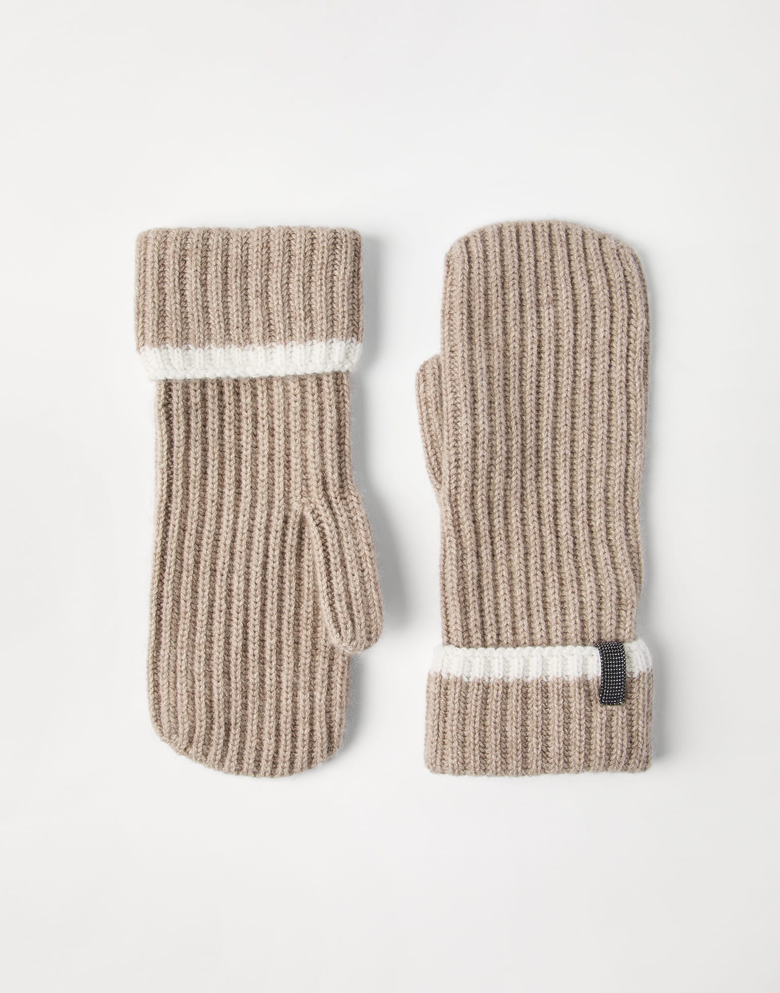 Noble Brunello Cucinelli fibers enrich these cashmere knit mittens. Timeless English rib knitting enhances the soft yarn and emphasizes the accessory’s exquisitely wintry feel. The shiny monili detail adds a feminine sparkle.