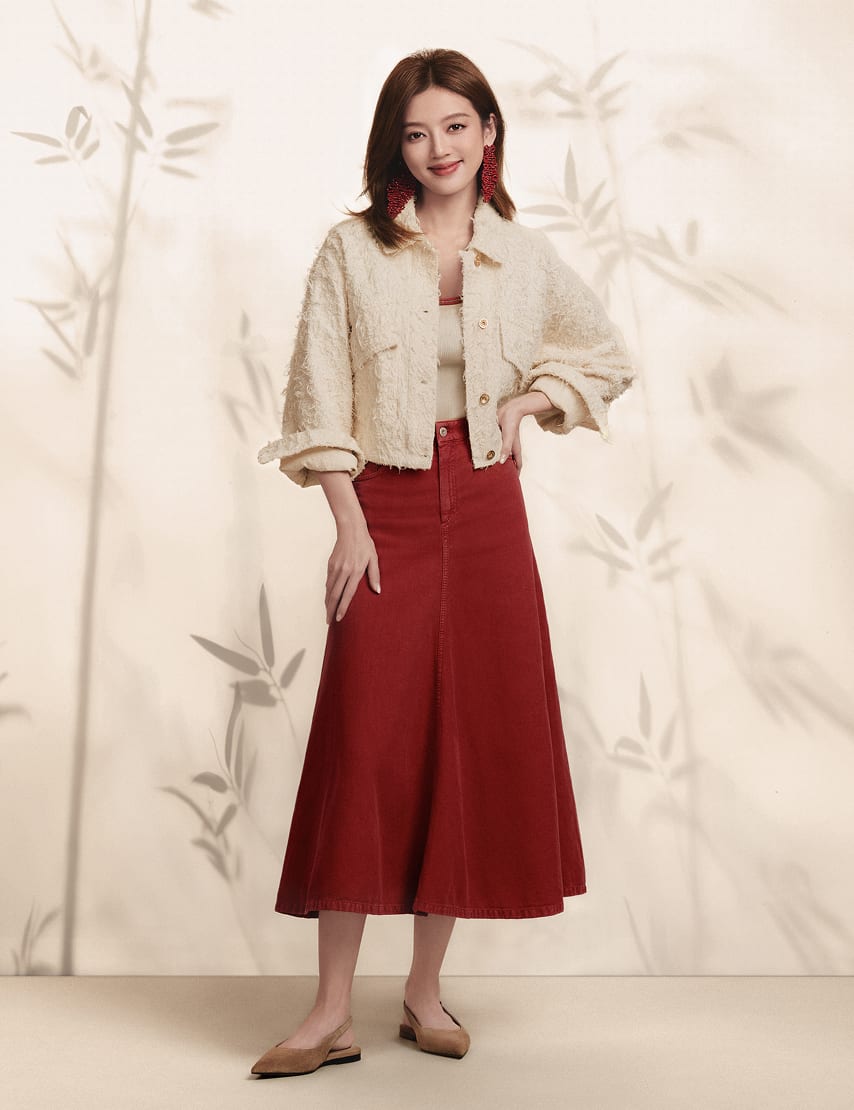 Five-pocket flared skirt