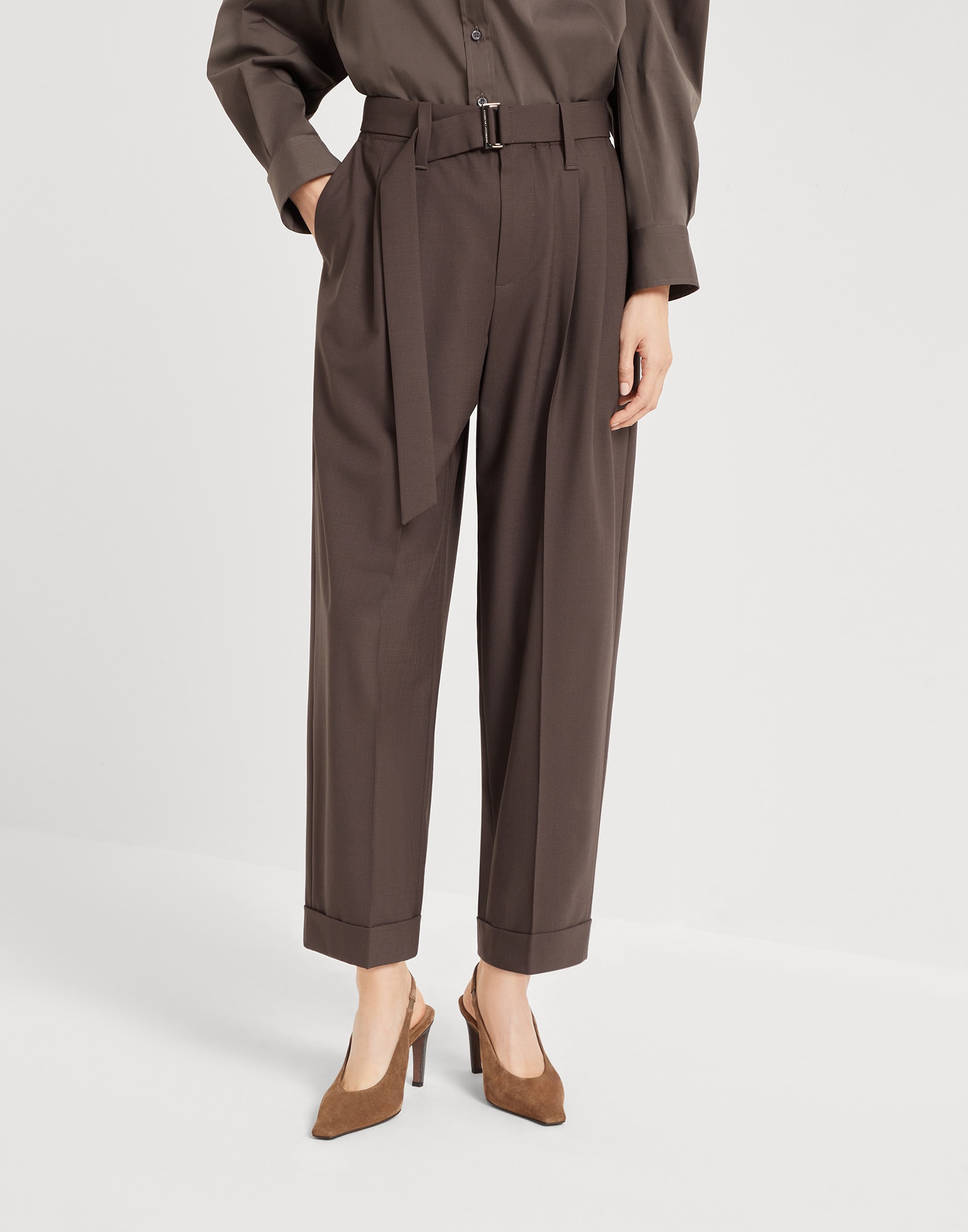 运动态度与裁缝细节融合,在这款精裁免裆裤上彰显全新风格。前幅的双褶和烫迹线,提升了宽松的轮廓,与直筒柔软的裤管裁剪线条相得益彰。抽式腰带与卷边裤脚则突显出裤子的休闲品味。