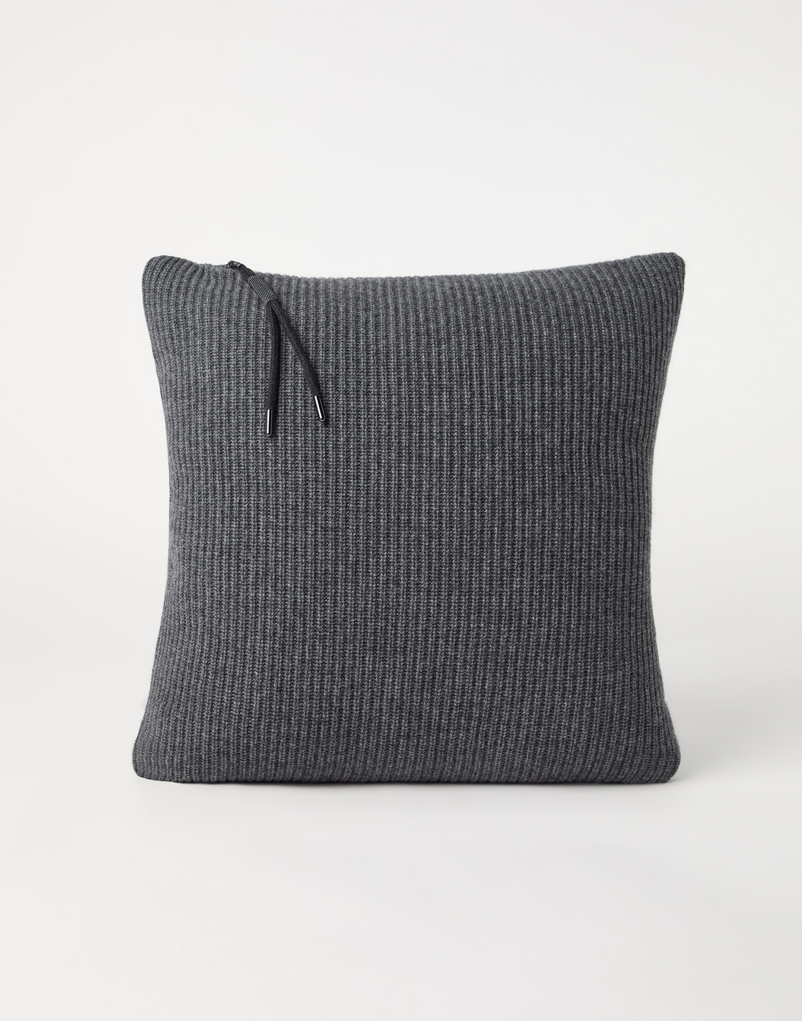 Brunello Cucinelli 的精美羊绒纱线丰富了新款英式罗纹针织靠枕的优雅品味。别致的纹理和松柔效果些许放大配件的量感,拉链袢上的细镶珠装饰为配件添增了一抹璀璨光芒。