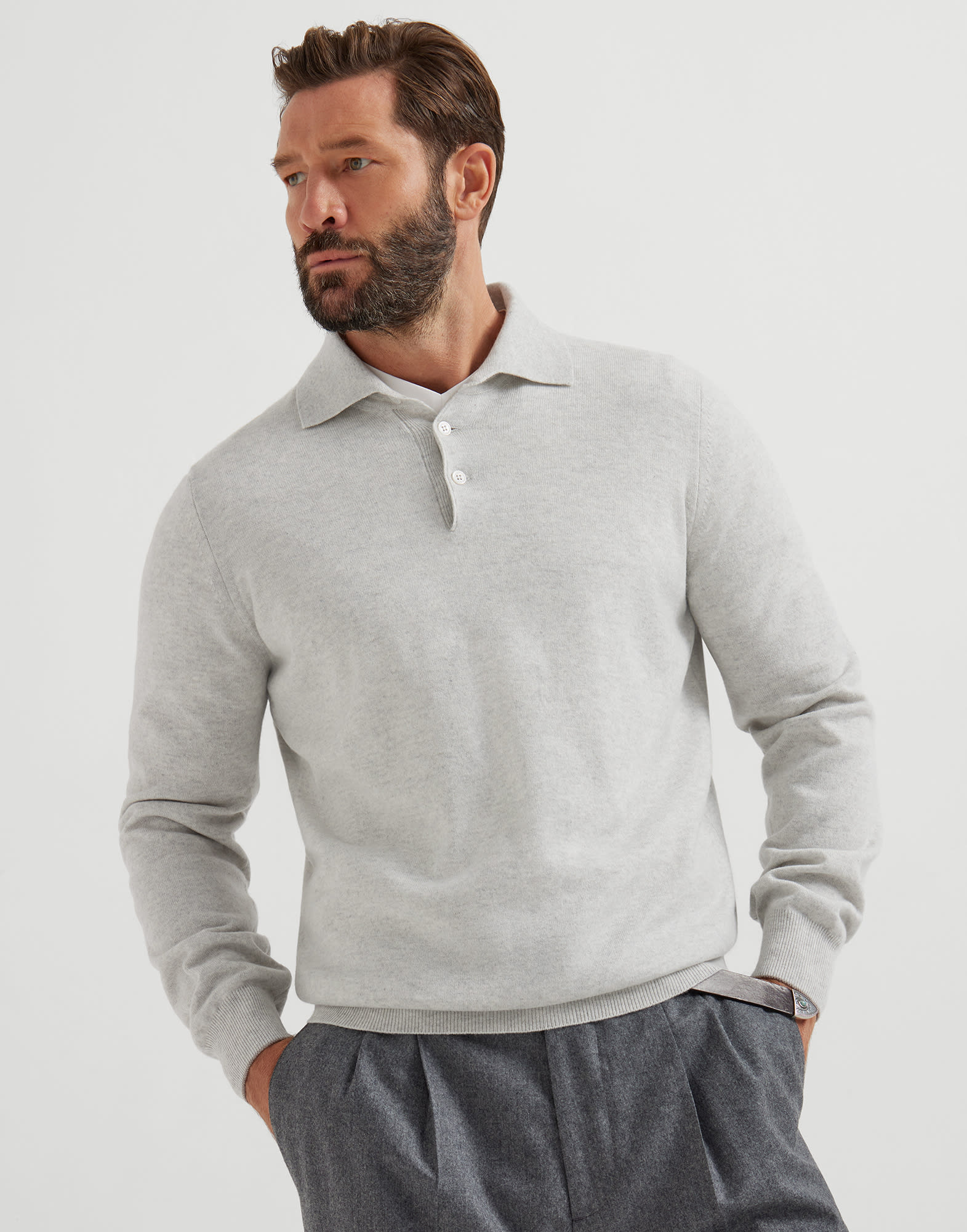 Brunello Cucinelli的珍贵天然纤维与精湛针织品工艺,在这款衬衫领马球衫上相得益彰。纯羊绒纱线经过针织,营造出轻盈松柔的质感,让经典服装的阳刚之气带有一抹“温柔”。而标准版型契合前部纽扣半开襟,完美了精致的设计感。