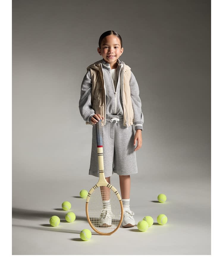 网球运动的灵感驰骋于2025春夏一系列童装特别精选服饰。